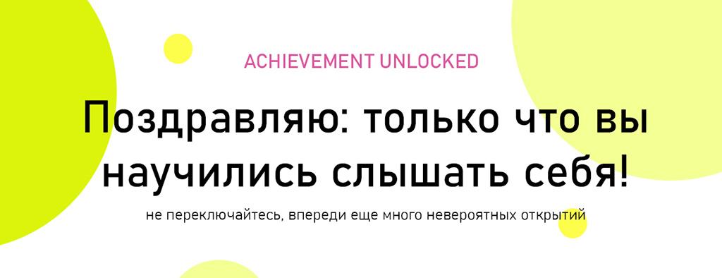 ОтзывыАнна Уянык: “Нина, хочу сказать человеческое спасибо за то, что ты включила свет в моей голове. Поверь, я уже давно пытаюсь найти какой-то свой путь, на котором бы мне было не скучно и не муторно себя каждый день видеть. Я, конечно же, проходила и другие курсы, слушала коучей, но почему-то лампочка зажглась именно сейчас. Решение было на поверхности, но именно твой курс помог мне его увидеть. Спасибо!”.