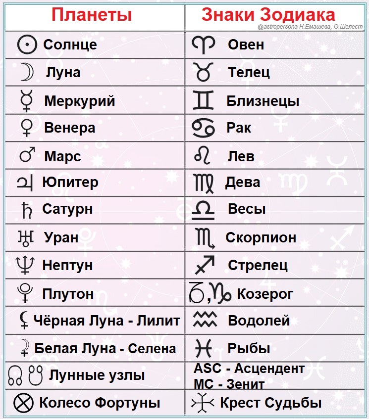 Планет в астрологии 8, но Солнце и Луну, хотя они являются светилами (Солнце – дневное, Луна – ночное), их тоже причисляют к планетам. В итоге имеем 10 планет от Солнца до Плутона и 12 знаков Зодиака, по числу месяцев в году, от Овна до Рыб.