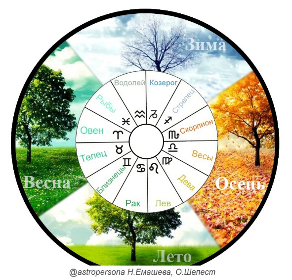 Как, известно, зодиакальные знаки связаны со сменой времен года – весна, лето, осень, зима.