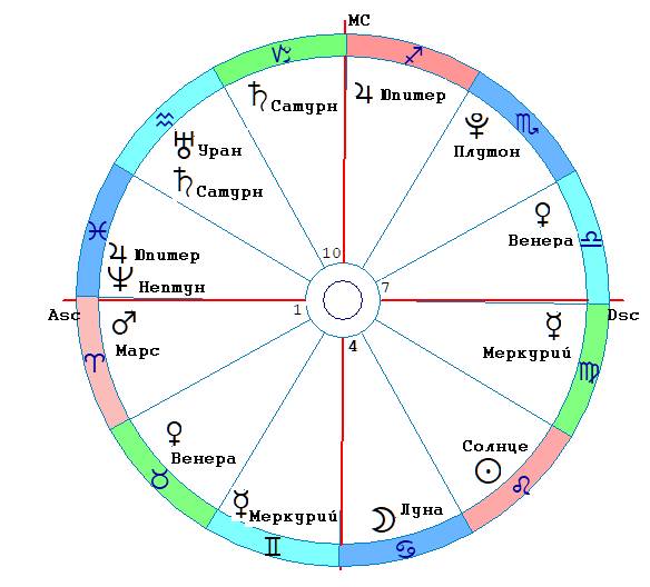Распределение планет по знакам и дома