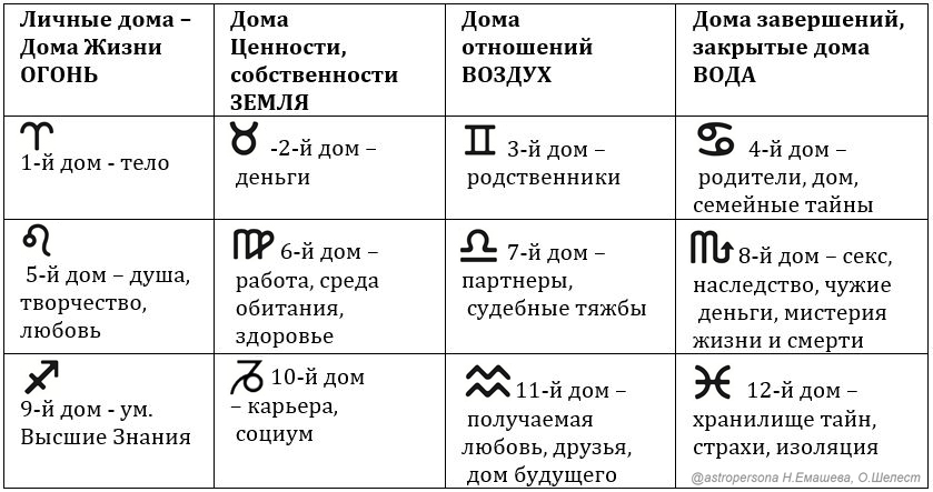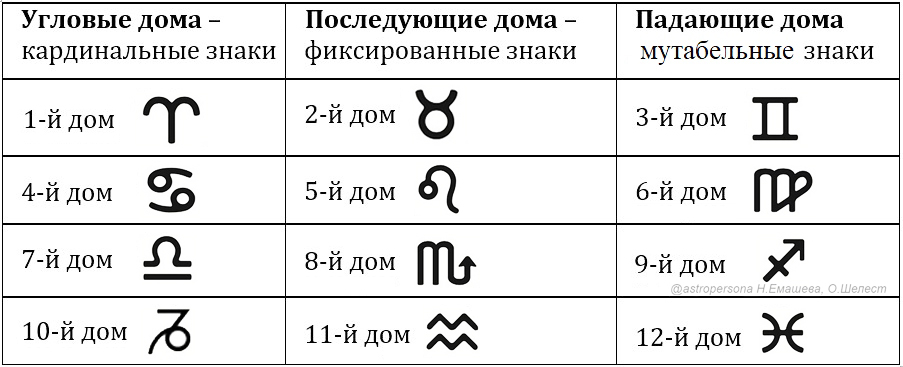 Угловые дома соответствуют кардинальным знакам – Овен, Рак, Весы, Козерог. Кардинальные знаки инициативны, активны, предприимчивы, полны энтузиазма, обладают большой жизненной силой. В негативном варианте – суетливы, поспешны в действиях, не умеют доводить начатые дела до конца.