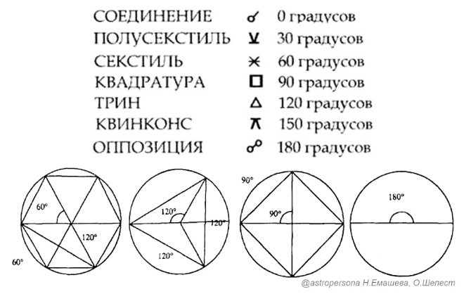 Аспекты – это градусное расстояние между планетами в карте рождения.