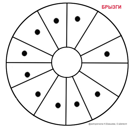 Иногда в конфигурации «Брызги» имеются соединения из 2–3-х планет, такая конфигурация называется «Брызги со сгущениями». Здесь тоже есть широта интересов и взглядов, но есть сфера наибольшего внимания и сосредоточенности, которой человек уделяет больше внимания. При наличии такой конфигурации в гороскопе следует обращать внимание на распределение планет по качествам и стихиям. Если преобладают планеты в мутабельных, в воздушных и огненных знаках, то человеку будет трудно доводить начатые дела до конца; его всегда будет что-то или кто-то отвлекать, у него всегда найдётся повод оставить незавершённым дело.