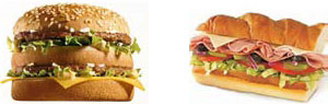 С тем же ненужным размахом пища в заведениях фаст-фуд: бургеры в три-четыре слоя, горки оладий, литровые стаканы пепси или сока. И одновременно активная борьба с массовым ожирением, хотя его истоки очевидны: передачи о победителях в борьбе с излишним весом чередуются с рекламой не умещающихся во рту «маков», или длиннющих в полбатона бутербродов из Subway, которые называют субмаринами, – размерами с подлодку.