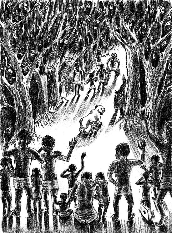 – Эти люди, – продолжал вождь, – тащили за собой маленькую девочку в длинном платье до пят. Вокруг шеи у неё была обвязана верёвка, и они волокли девочку прямо по земле. Та извивалась, как маленькая змейка и страшно кричала, пытаясь стащить с себя завязанную на шее петлю. А они стегали её плетью и смеялись.