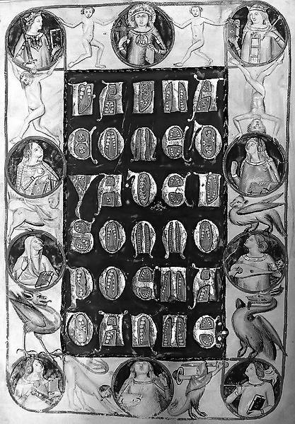 Книга действительно была непривычно больших размеров. Её обложка была сделана из светлой кожи, обведенной тонкой красной рамкой. А в центре книги на ярко синем фоне помещалось название книги на языке, буквы которого Мане показались знакомыми.
