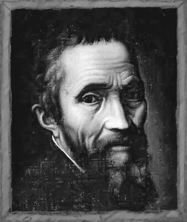 – Видишь, – сказала она, листая книгу, – вся книга разукрашена вручную. Это необыкновенно тонкая и изящная работа. И с каким вкусом сделана, – добавила королева, нежно касаясь страниц. Эта книга – настоящее произведение искусства. Ведь она проиллюстрирована вручную уже после напечатания текста самим Микеланджело, одним из самых великих художников вашего мира! И эта книга – единственная с его иллюстрациями. Вот, кстати, его автопортрет, – и она показала на картину за их спиной. С картины на них с грустной усмешкой смотрел худой человек с измождённым лицом и умными проницательными глазами.
