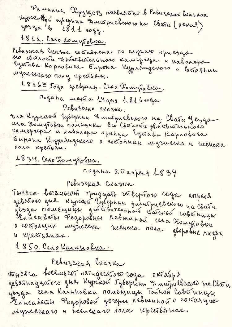 Родословная Хрущевых, составленная по заказу Р. Н. Аджубей в 1990-х годах