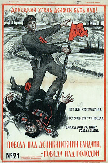 Плакат «Донецкий уголь должен быть наш! Победа над деникинскими бандами – победа над голодом» 1920