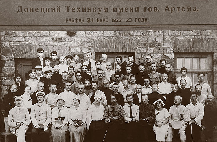 Донецкий техникум им. тов. Артема. Рабфак 3-й курс. Н. С. Хрущев во втором ряду четвертый справа
