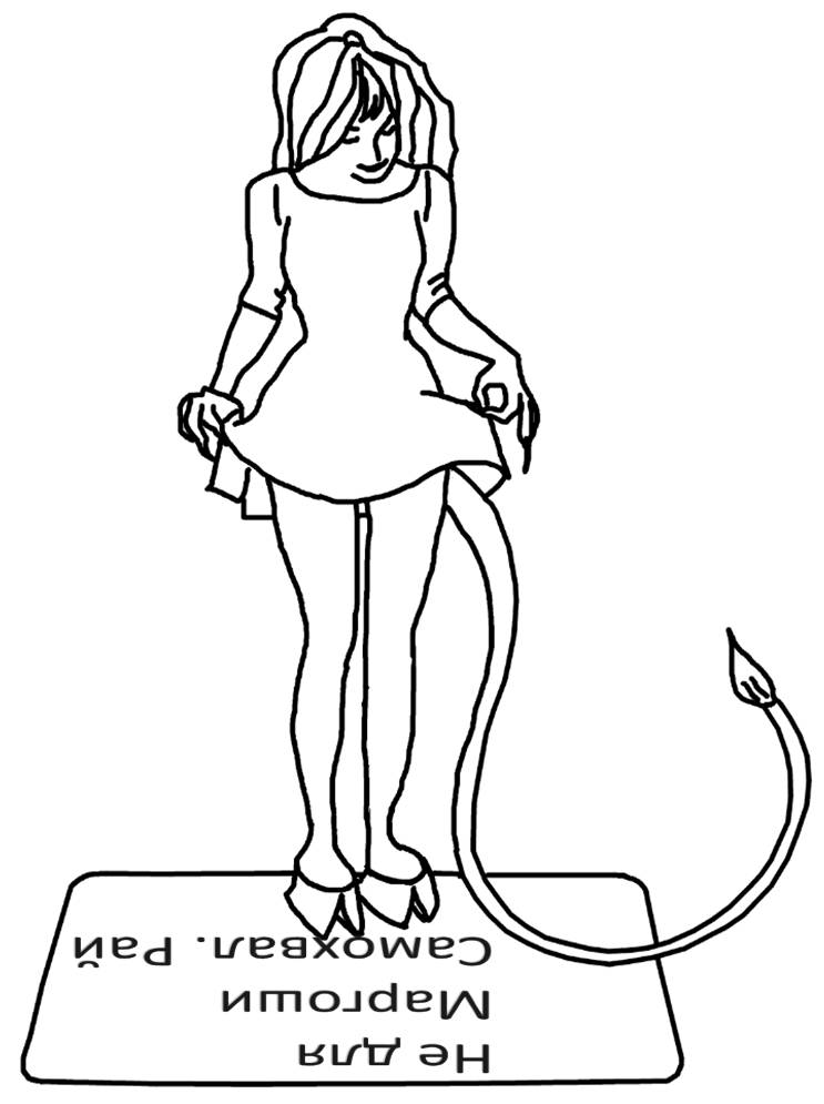 Маргоша встретила ее в «обновке». На ней только деревянная кадка из-под воды, дно выбили и натянули на нее, словно платье-пояс. В кадке она абсолютно голая, прикрыто всё ровно от сосков до предельно сомнительной зоны бикини. Из аксессуаров только ручка от кадки и носки. Девушка шагала в ней, как в бочке, придерживая руками.
