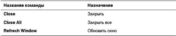 Команды пункта меню Window (Окно) представлено на рис. 2.21 и в табл. 2.5.
