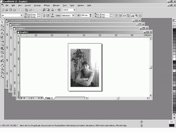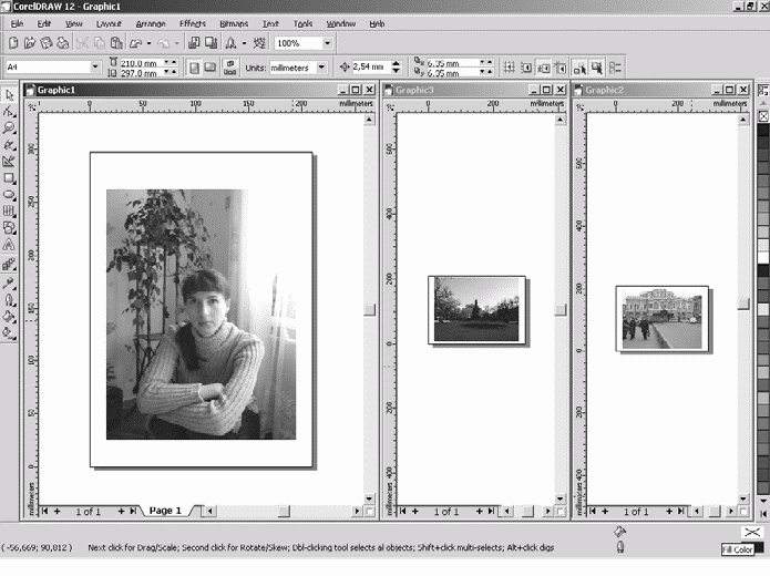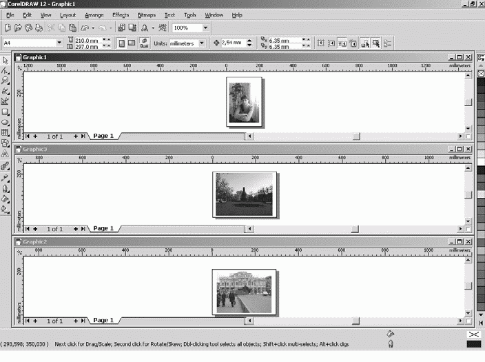 Как и главное окно CorelDRAW, окна документов можно масштабировать, перемещать, закрывать, сворачивать и разворачивать. Все эти операции выполняются так же, как и операции с окнами Windows Explorer.