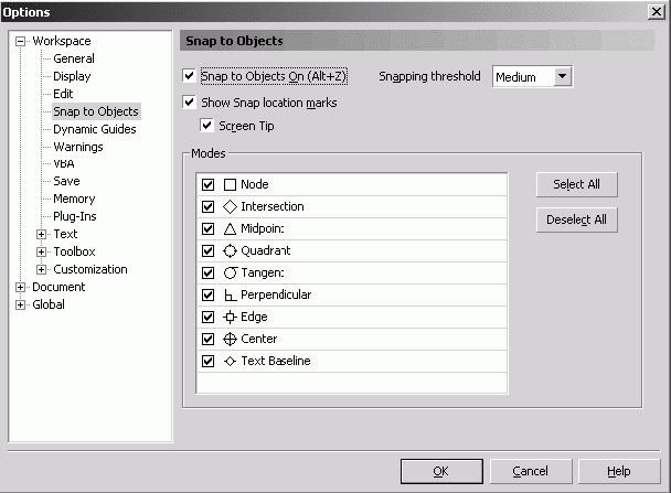 Рис. 2.32. Диалоговое окно, открываемое командой Option | Snap to Objects Setup