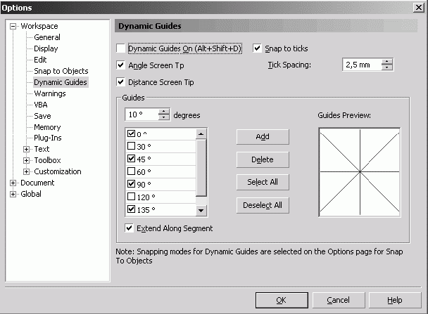 Рис. 2.33. Диалоговое окно, открываемое командой Option | Dynamic Guides