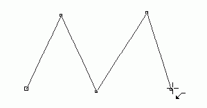 6. Сделайте второй щелчок мышью. На месте курсора возникнет второй узел, который будет соединен прямой линией с первым. Отрезок построен, но наша цель – зигзагообразный контур. Он должен состоять из нескольких таких отрезков.