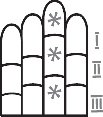 Холм делится на 3 части: верхняя, средняя, нижняя.
