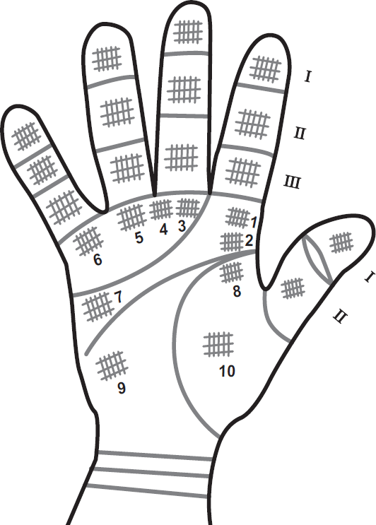 Решетка на бугорках и фалангах пальцев