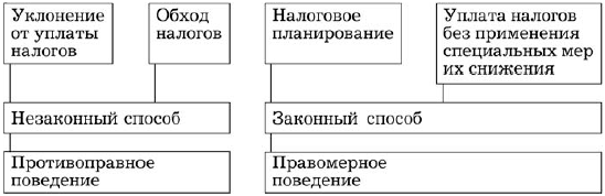 Главным является принцип законности, поскольку именно он позволяет разграничить понятия «налоговое планирование» и «уклонение от уплаты налогов». В зарубежном праве отношение государства к налоговому планированию реализуется в концепциях уклонения от уплаты налога (tax evasion) и обхода (избежания) налога (tax avoidance). При этом уклонение от налогов (tax evasion) практически равнозначно незаконному налоговому планированию, в то время как избежание налогов (tax avoidance) правомерно.
