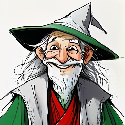 В этот момент открылась дверь домика, и на пороге показался человек. Ростом он был намного выше Мии. Человек был в белой холщевой рубахе, подпоясанной красным кушаком. На ногах его были маленькие красные сапожки, в которые были заправлены белые холщевые штаны. Хотя одет волшебник был очень просто, он был какой-то величественный, вызывающий к себе уважение.