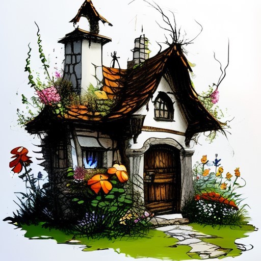 Долго ли коротко ли они шли по лесу, и вдруг тропинка прервалась. Домик волшебника девочка увидела не сразу, он прятался в густых зарослях колючей малины. Миа сорвала одну ягодку, та оказалась сладкой и сочной. Перед домиком было большое крылечко, и на нем возлежали два огромных кота, один белый, другой черный. Черный кот спал, а белый вылизывал свои лапки.