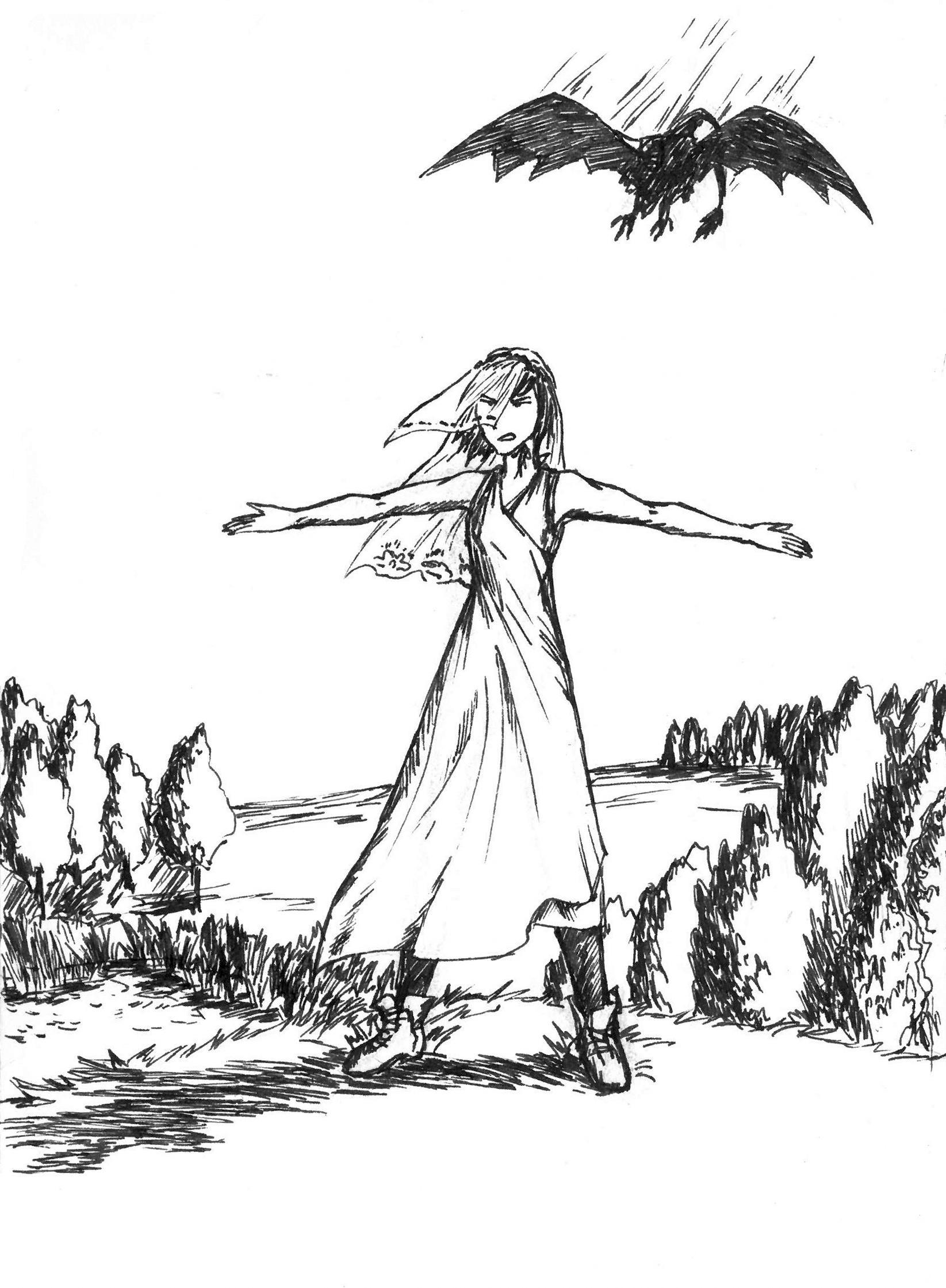 С меня градом катилась вода; в лапах дракона я повисла тряпкой, не в силах больше бороться, напоследок взглядом вверх ногами выхватив нашу "ловчую стоянку", стремительно уменьшающуюся с каждым рывком при взмахе огромных крыльев.