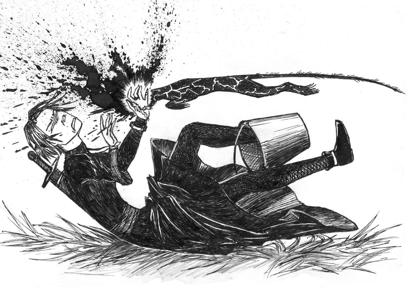 Аккуратно умерщвить демона не получилось. Его размазало по всему, что оказалось рядом, а рядом оказалась по большей части я. Черной маслянистой кровью забрызгало руки и лицо, и немного грудь.
