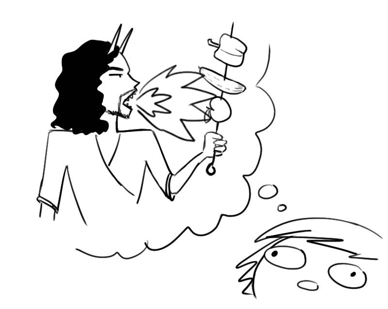 – А зачем разводить огонь, если можно просто дыхнуть огнем на пищу?