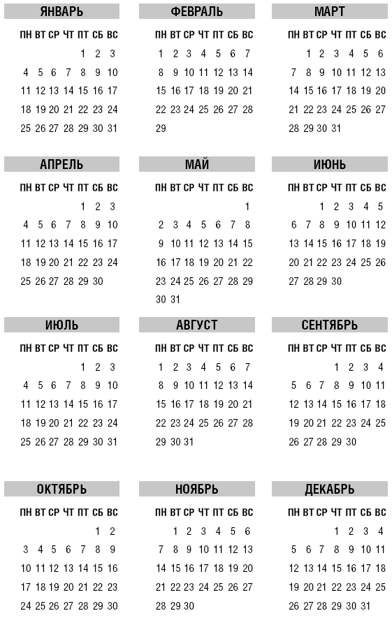 Для удобства пользования календарем все рекомендации и полезные советы распределены по следующим рубрикам: