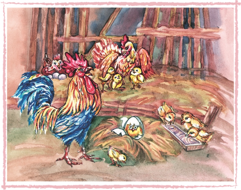 Кудаша жила в сарае вместе с другими курочками и красивым важным петухом. Сарай этот назывался курятником. Петух в их большой семье отвечал за порядок, как настоящий и заботливый хозяин. Просыпался он вместе с солнышком, и его кукареку разносилось далеко по округе. В курятнике жили по своим законам и правилам: курицы несли яички, высиживали цыплят, потом кормили и воспитывали их. И конечно, каждый знал своё место и время.