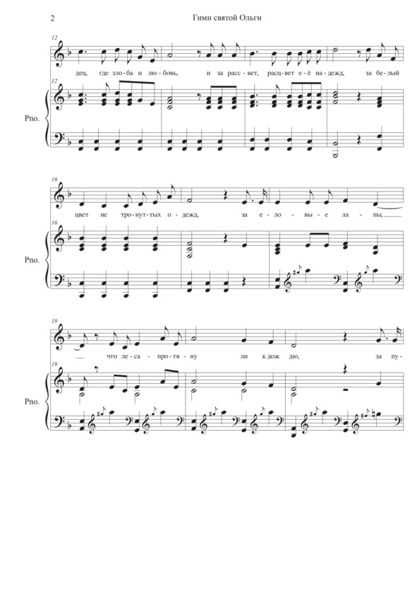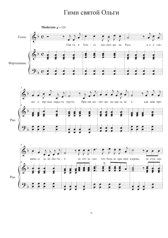 Моя тетя, Нина Забукидзе, видя наши усилия, написала для нас цикл песен, в том числе Гимн Святой Ольге.