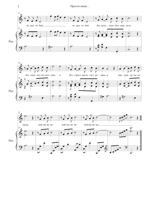 Прости меня, простиЗа робость недоверья.Хотя уже прошлиИ боль, и даже время,Но в сердце все живетВины глухое бремя…Прости меня, простиЗа запертые двериПеред тобой…Бесцельным был наш путь,Бесплодными мечтанья,Бесстрастность состраданьяМне сдавливала грудь…Прости, что на любовьМне не хватило силы,Что лёгкость бытияМеня к себе манилаИ молодость моямечтать и жить спешила.Прости меня, мой друг,Как я тебя простила —Но не себя….Пойми меня, пойми