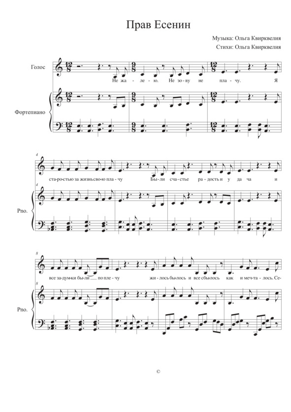 «Не жалею. Не зову. Не плачу.»Я старостью за жизнь свою плачу…В ней были счастье, радость и удача,И все задумки были по плечу.2 раза:Жилось – былось,И всё сбылось,Как и мечталось.Себя нашла,Но жизнь прошла…А я осталась…