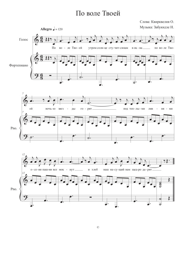 Музыка Н. Забукидзе, слова О. Квирквелия