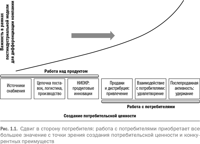 Большинство компаний управляются так, как если бы их «центр тяжести» по-прежнему находился на уровне продукта. Даже у тех, чьи основные издержки, источники создания потребительской ценности и основы конкурентного преимущества уже сдвинулись на уровень потребителя, сам бизнес остается структурированным вокруг продукта. Большую часть времени менеджеры посвящают именно продукту, продолжая руководствоваться в своей работе соответствующими показателями. Существуют определенная инерция, даже сопротивление сдвигу на уровень потребителя, поскольку в этой области работают другие, незнакомые менеджерам законы. Задача моей книги – дать руководителям компаний понимание правил игры на уровне потребителя.