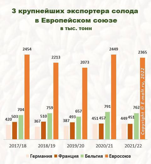 На открывающихся страницах сайтов мы увидели статистику производства солода в Европе.