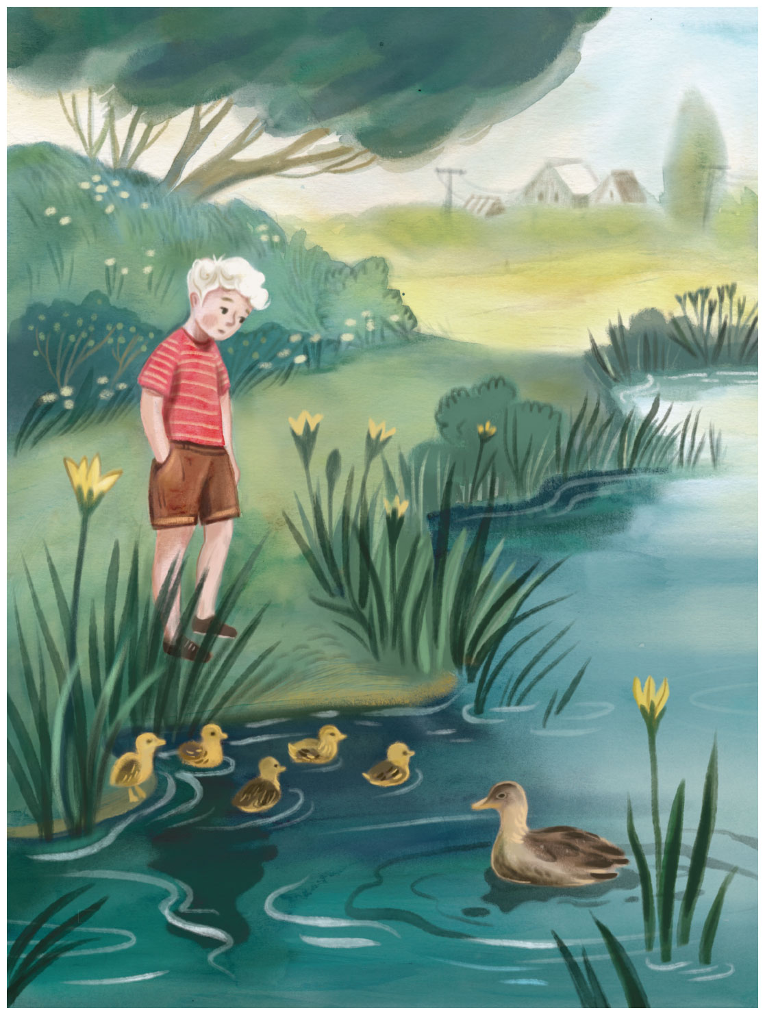 «Один, два, три, четыре… восемь, – подсчитал мальчик утят. – Большая семья, а у меня нет ни брата, ни сестры…»