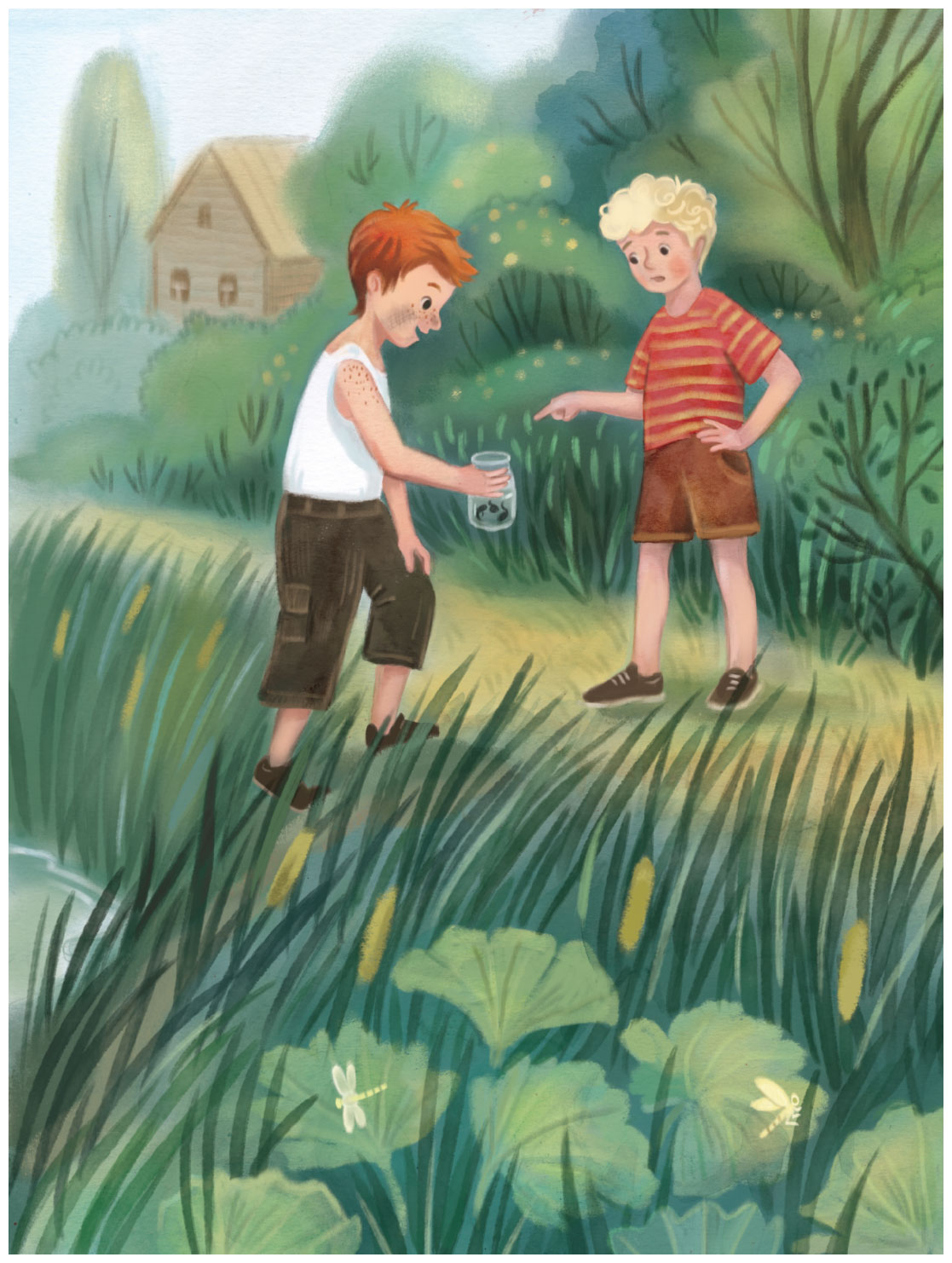 – Ну ты даёшь! – хмыкнул рыжий. – Видишь у хвоста маленькие лапки? Это задние. А скоро и передние вырастут. Ты что, правда не видел головастиков?