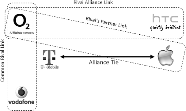 Gimeno (2004) suggested that partner selection and the type of alliance formed as a response to a competitor do not follow a naïve logic; that is, neither allying with a rival’s partner nor the formation of countervailing alliances is systematically preferred. Rather, alliance type choice depends on the degree of co-specialization, which itself reflects the degree to which alliance partners emphasize the specific needs of the particular partner, inter alia through specific investments, or by providing proprietary knowledge. In our example, if Apple offered a specific version of the iPhone in the shape of a T-Mobile logo, and T-Mobile installed specific T-Mobile-iPhone stores, this would reflect relationship-specific investments into the alliance that would be lost if the alliance broke up. Gimeno is thus able to show that rivals’ co-specialized alliances may involve exclusivity, precluding alliances with rivals’ partners and thus encouraging countervailing alliances.