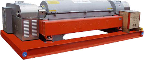 Центрифуга: Декантирующая центрифуга имеет цилиндрический конусообразный барабан (см рис. 2.10.) относительно большим соотношением длины и диаметра. Особенностью конструкции является встроенный внутри барабана шнековый конвеер, предназначенный для постоянной выгрузки отсепарированной твердой фазы. Скорость вращения барабана колеблется в пределах от 1000 до 4000 оборотов в минуту, позволяющая развивать силу “д” от 500 до 4000. Технологическая жидкость 3 подается в цилиндрическую секцию, где она образует слой вокруг стенок. Толщина этого слоя зависит от расположенных в концевой части порогов, через которые осветленная жидкость сливается под действием центробежной силы. Твердые частицы, как более тяжелые, собираются у стенки барабана и откуда они непрерывно выводятся с помощью шнекового конвейера и поднимаются вверх по конической части – намыву (пляжу) – и далее наружу через выгрузные отверстия 5, расположенные в суженной части конуса барабана.