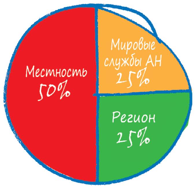 Наши предшественники в Анонимных Наркоманах сделали все, что в их силах, чтобы у нас была возможность отыскать АН, чтобы двери собраний оставались открытыми. Деньги, которые они опускали в мешочек, шли на оплату телефонной линии и печать плакатов, на доставку литературы и проведение презентаций в больницах и учреждениях, на то, чтобы нести весть АН. Сегодня у нас есть не только возможность, но и ответственность за то, чтобы шанс услышать нашу весть был и у других зависимых. Наши денежные пожертвования идут на оплату всех звеньев структуры обслуживания – чтобы нести весть в местностях, чтобы помогать регионам поддерживать и обслуживать местности, чтобы мировые службы не просто помогали существующим сообществам АН в разных странах, но работали еще и на то, чтобы обеспечить доступность АН и в других странах. Работа переводчиков, бесплатная литература или скидки на нее, семинары по развитию сообщества – все это делается от имени АН в целом, чтобы нашу весть могли услышать те зависимые, которые все еще страдают.