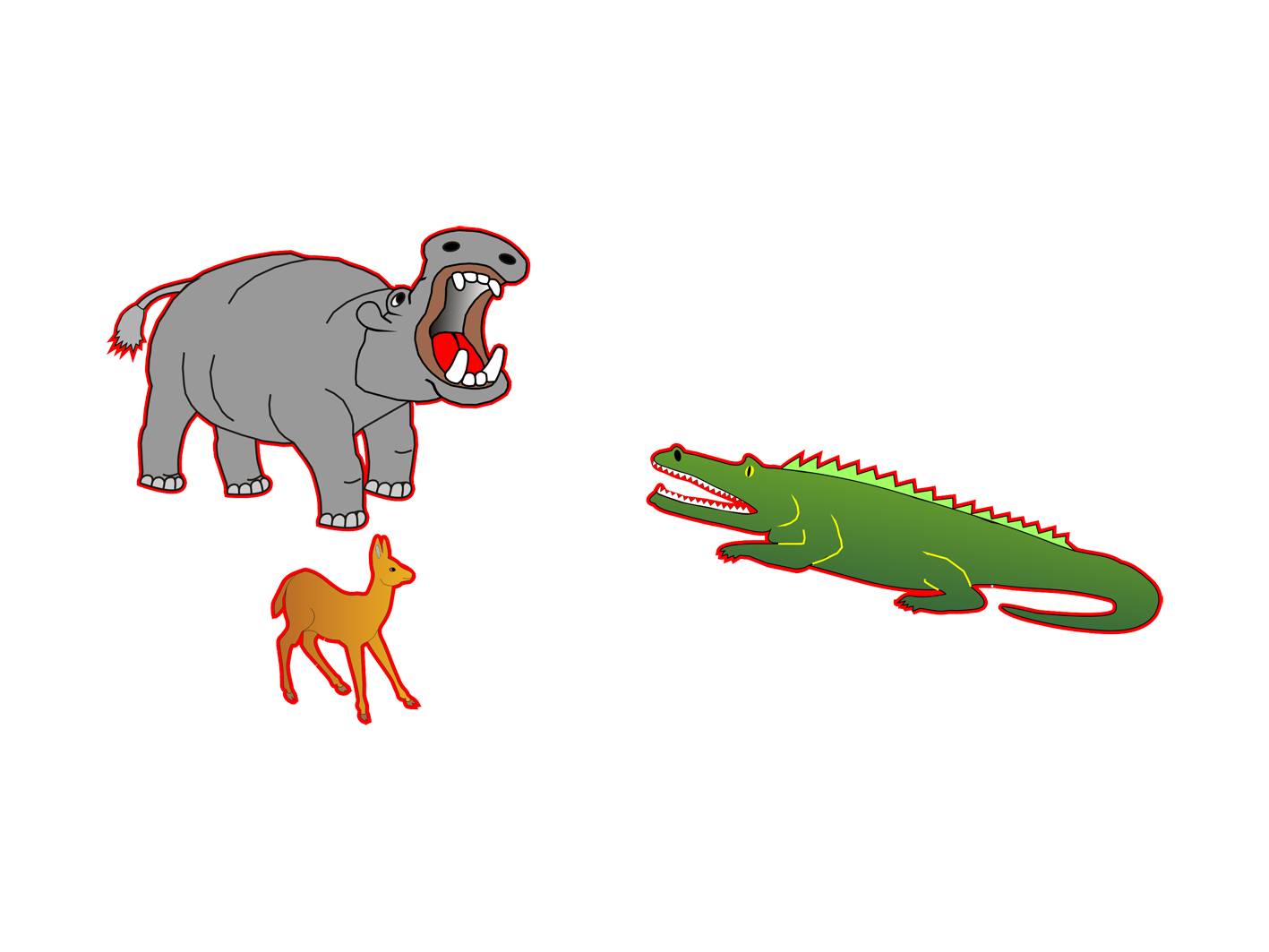 Крокодилу ещё повезло, что бегемот не стал его догонять. Вместо этого, великан подплыл к берегу и помог юной газели добраться до суши. К счастью, зубы злой ящерицы ухватили её за копыто и не сломали тонкую ногу. Ведь, к сожалению, кости у травоядных животных никогда не срастаются.