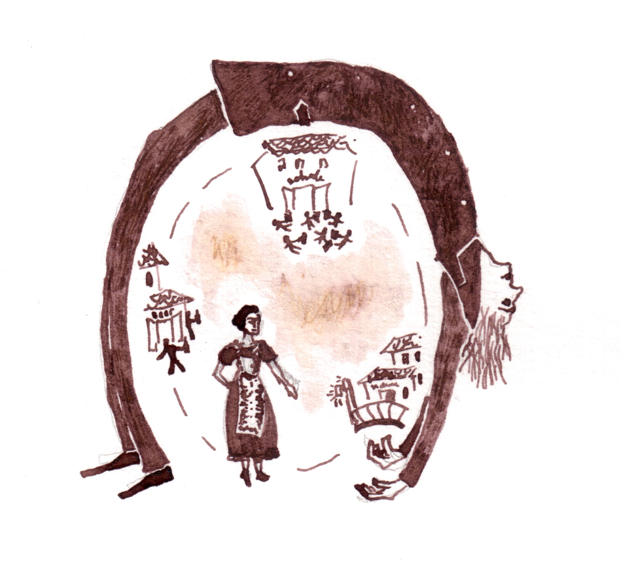 Следуя маятниковому движению, «несколько раз человек приближается к цели только за тем, чтобы дорожка вновь отвела его в противоположную сторону»3, прежде чем он достигнет центра. Человек, выходящий из лабиринта архаической мистерии совсем не тот, кто входил в этот лабиринт, – это человек, переродившийся для нового уровня существования. В центре лабиринта происходит смерть и новое рождение. Лабиринт это еще и танец, которым Тесей отмечает благополучное завершение своего испытания, достигнув Делоса. В Греции танец, ритуально повторяющий ход по лабиринту, называют «танцем журавлей» и исполняют ночью. В рисунок танца также встроено маятниковое движение: сначала движение влево – в сторону смерти, далее цепочка танцующих меняет направление, не замыкая круг. Стоящие в цепочке первыми, почти обойдя круг, поворачиваются в обратном направлении, образуя вписанную в первую вторую окружность, так что те, кто стоял в начале цепочки, двигаются в противоположном направлении, параллельно тем, кто стоял в конце цепочки. Круги вьются, раскачиваясь как маятник. Таким образом, архаический лабиринт был и особенной построенной конструкцией, и рисунком движения тела, устремленного к трансформациям. Лабиринт —это превращающееся тело.