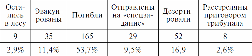 В ноябре 1941 года в лесу оказалось 1315 бойцов и командиров РККА, что составило 35 процентов от общего числа партизан[17].