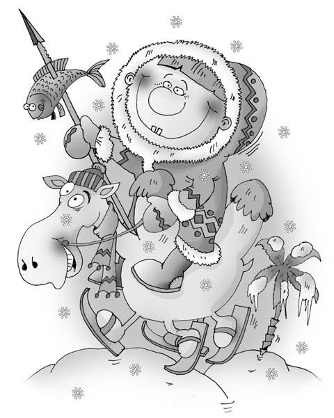 Чукча: – Ты сильный, да? Вот теперь тащи его до стойбища 30 км!