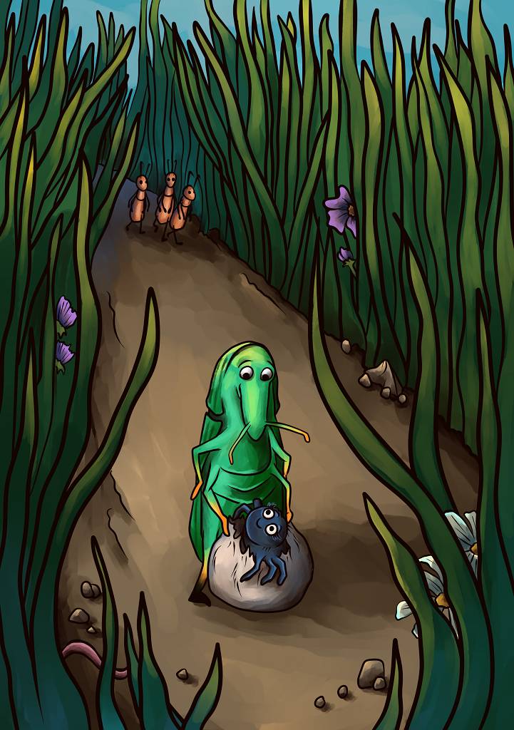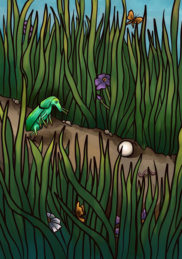 В ясный летний денек, пробегая по тропе, годами натоптанной среди нескончаемых полей, жук-долгоносик наткнулся на почти созревшее яйцо паука. Он удивился находке: ведь яйцо было всего одно, а насколько долгоносик знал, пауки обычно имеют целую кладку, и, более того, ее чаще всего охраняет мама-паучиха.