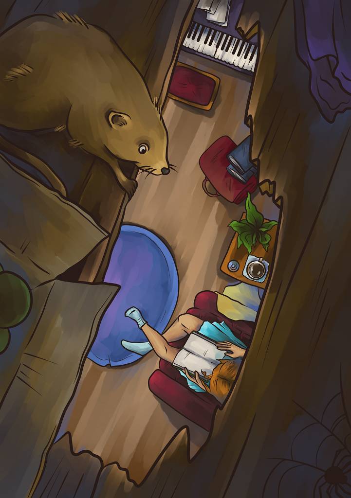 В дом этот любила прибегать и подсматривать за жильцами мускусная крыса, жившая неподалеку в местном пруду. Гостья была очень любознательна и трудолюбива, поэтому днями и ночами повторяла в своем маленьком припрудном жилище все то, что говорила девочка.