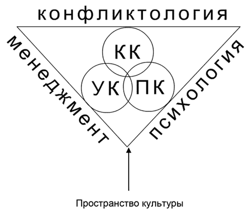 Обозначения: КК – конфликтологическая культура; УК – управленческая культура; ПК – психологическая культура
