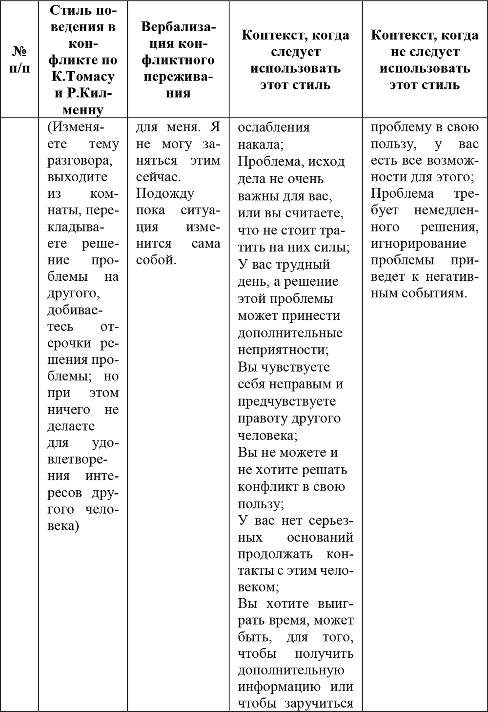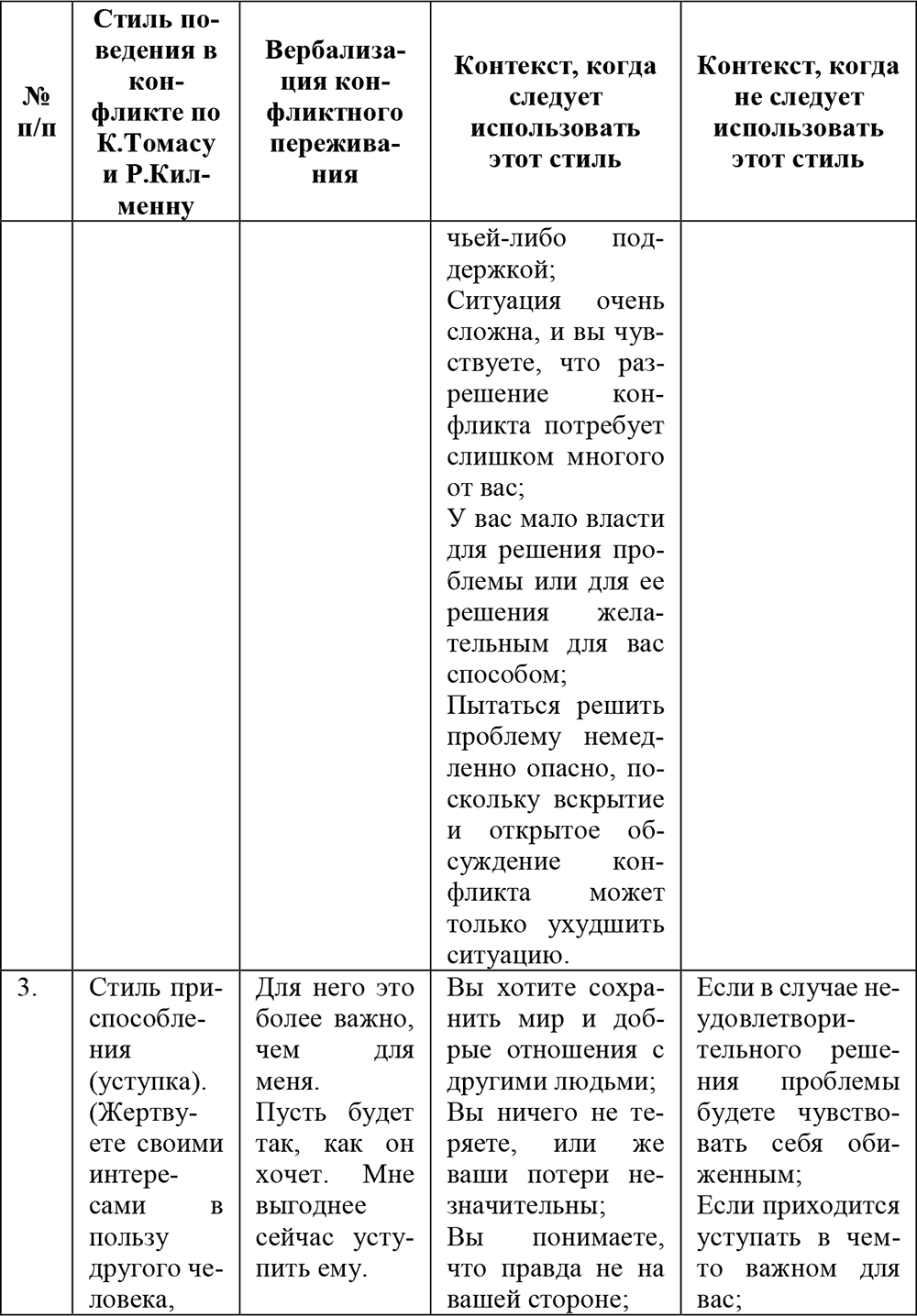 Таблица 3. Типы поведения оппонента в конфликтной ситуации