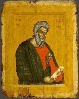Перед отправлением своим апостол получил из рук Пречистой Её нерукотворенный образ. Позднее к святому странствию апостола Андрея присоединится апостол Симон Кананит. По преданию, это тот самый Симон, на брачном пиршестве которого, вода, чудом Христовым, стала лучшим вином…